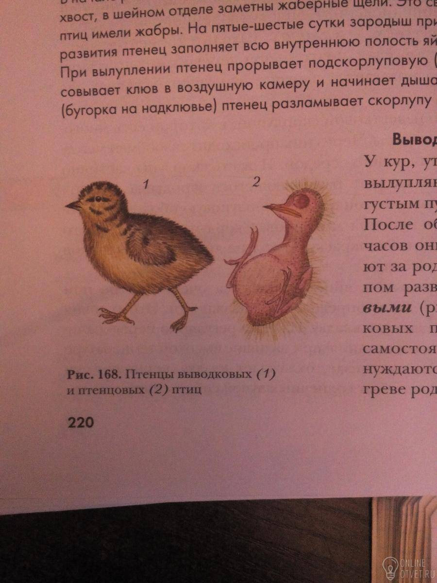 У выводковых птиц птенцы появляются зрячими, покрытыми пухом, способностью ходить и есть корм (страусы, гусинообразные)
