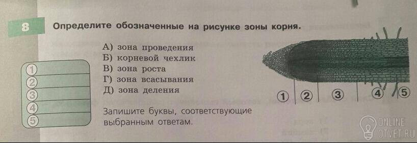 8. Определите обозначены на рисунке зоны корня (картинка)