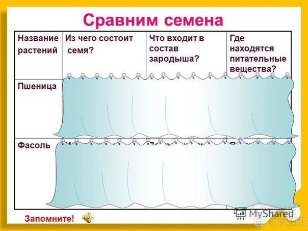 Пшеница: семя пшеницы состоит из кожуры, эндосперма и зародыша. Питательные вещества - в эндосперме.составе зародышей пшеничного семени обнаружены витамины А, D, Е, большое количество витаминов группы В (в зародыше их в несколько раз больше, чем в самом зерне) и другие витамины. Минеральный состав представлен 21 микроэлементом, среди которых есть калий, кальций, магний, натрий, фосфор, железо, медь, марганец, селен, цинк и др.