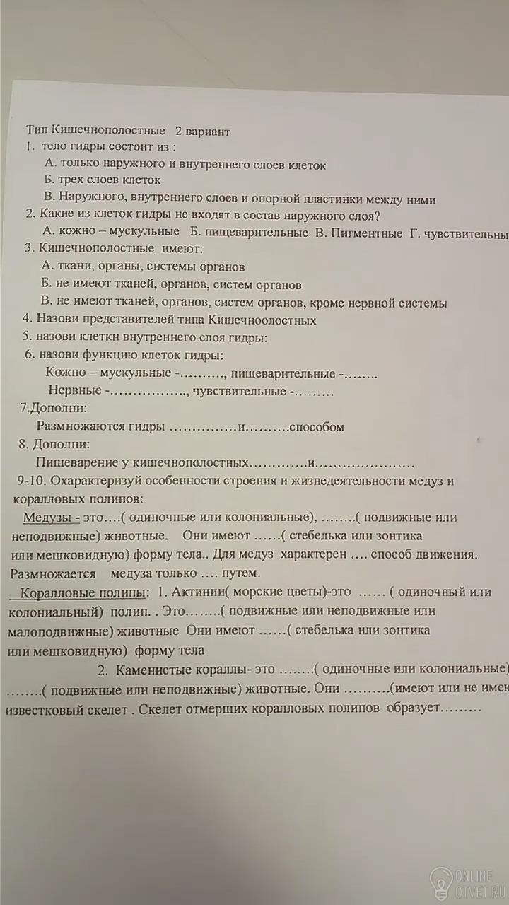 6.к-м - выстилают гастральную полость; образуют ложножки (передвижение); пищ-ые расщепление пищи; нервные воспринимают раздражение; чувствительные принятие импульсов