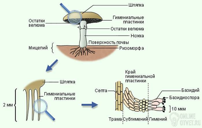 Внешнее строение нижней части шляпки трубчатого и пластинчатого грибов. Помогите пожалуйста