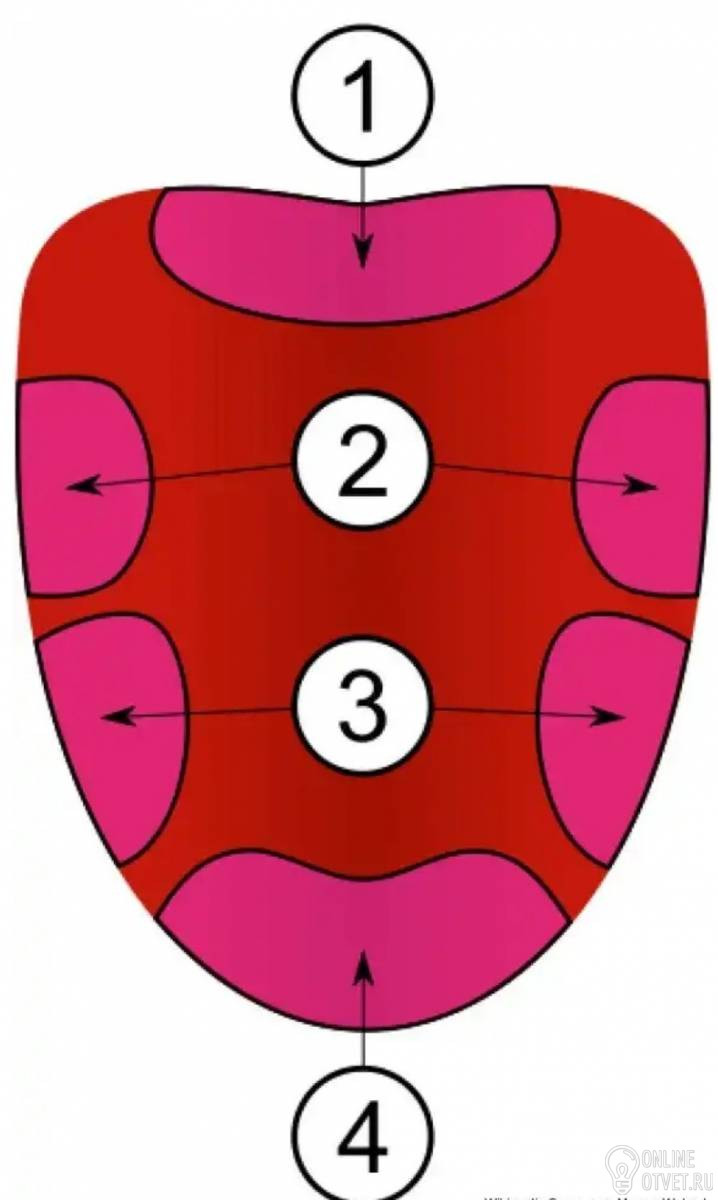 Какие зоны чувствительности присутствуют на нашем языке, где они расположены?