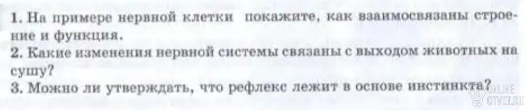 1. Нервная клетка - нейрон - состоит из тела нейрона и отростков: коротких: дендритов и длинного: аксона. Дендриты - рецепторы, воспринимающие раздражение от другого нейрона или из окружающей среды и передают импульс в тело нейрона. Аксон передает импульс другому нейрону или органу - эффектору (например мышце) Аксоны составляют нервные волокна. чтобы импульсы не путались аксоны покрыты миелиновыми оболочками (представьте телефонный кабель: в нем много мелких проводков. Так вот, если бы небыло изоляционной оболочки у каждого проводка, сигналы бы все перепутались. Так и в нервных волокнах).