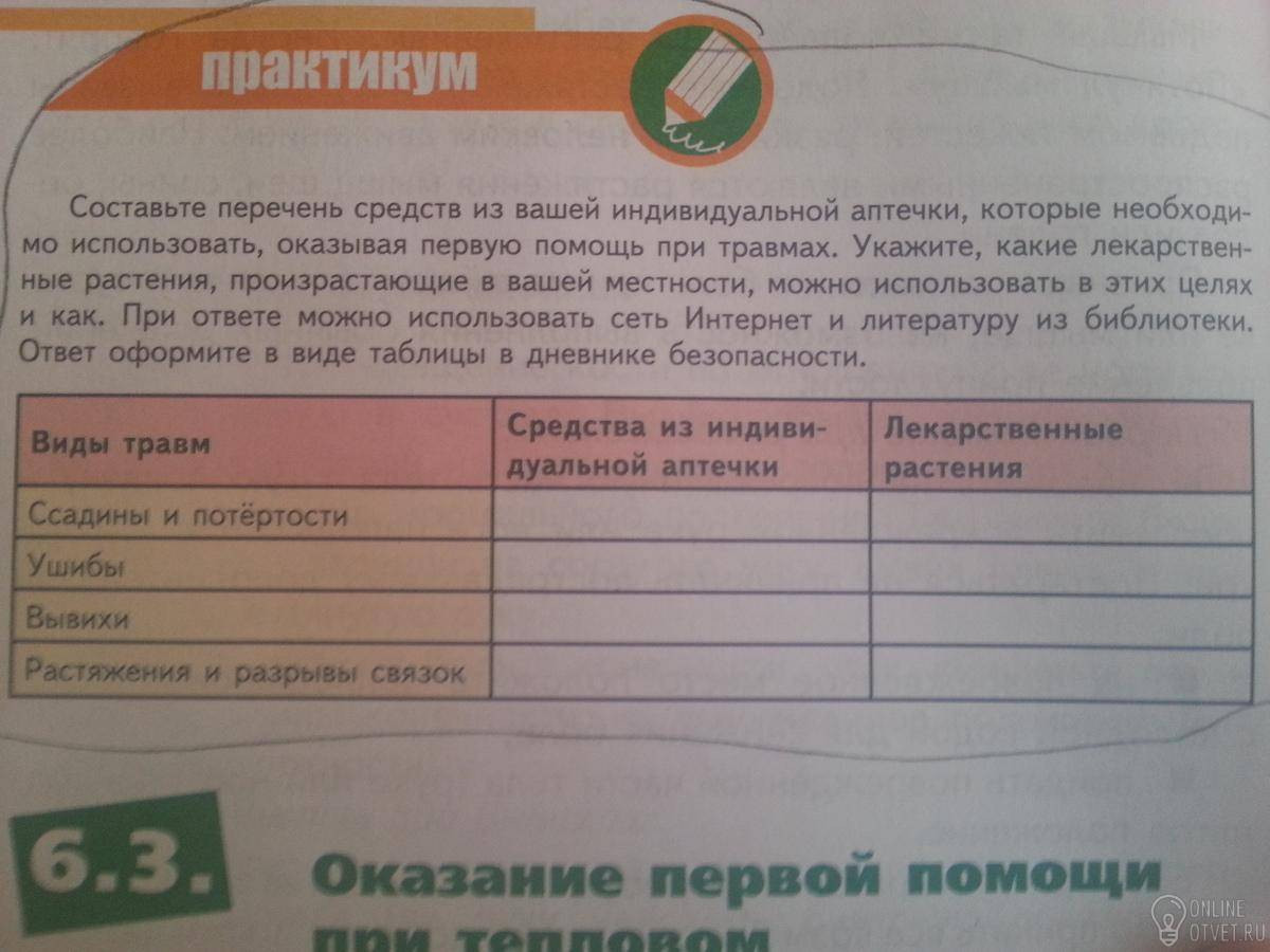 Составьте перечень средств из вашей индивидуальной аптечки которые необходимо использовать оказывая первую помощь при травмах укажите какие лекарственные