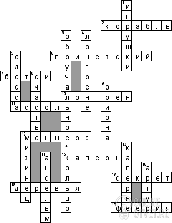 2. Що було зображено на картині, яку любив розглядати Грей6. Справжнє прізвище автора7. Як звали служницю Грея10. Матрос Оріона, який прослужив на цьому кораблі 10 років11. Як звали доньку Лонгрена?12. Хто розповів Грею історію Ассоль15. Село, де жила головна героїня17. Як називався корабель Артура Грея?18. Справжні друзі Ассоль19. Як А.Грін визначив жанр свого твору
