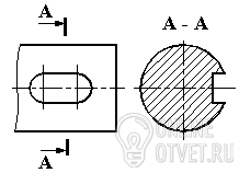 4. Как показывают на сечении отверстия и углубления, ограниченные поверхностью вращения, если секущая плоскость проходит через их ось?