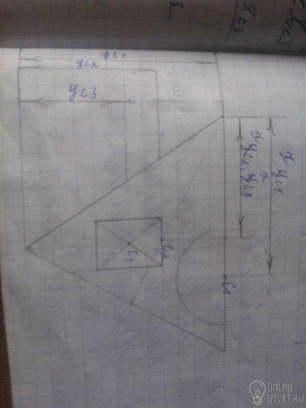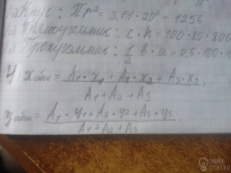 4) Основная наша задача, я вам дал формулу за которой вы и найдете силу тяжести. ( Х1-это первая ваша фигура Круг, Х2 - вторая прямоугольник, Х3- третья это треугольник. )