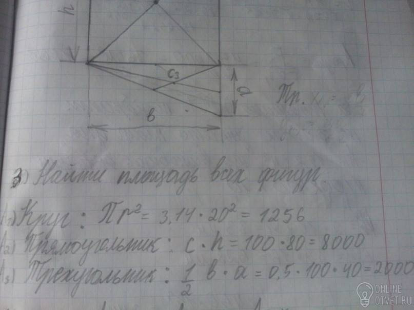 3) Дальше найдем площадь каждой из фигур за формулами( я расчет выполнил за вас )