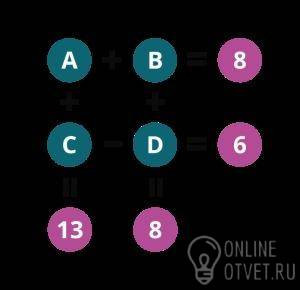 : A+b=8,c-d=6,a+c=13,b+d=8..