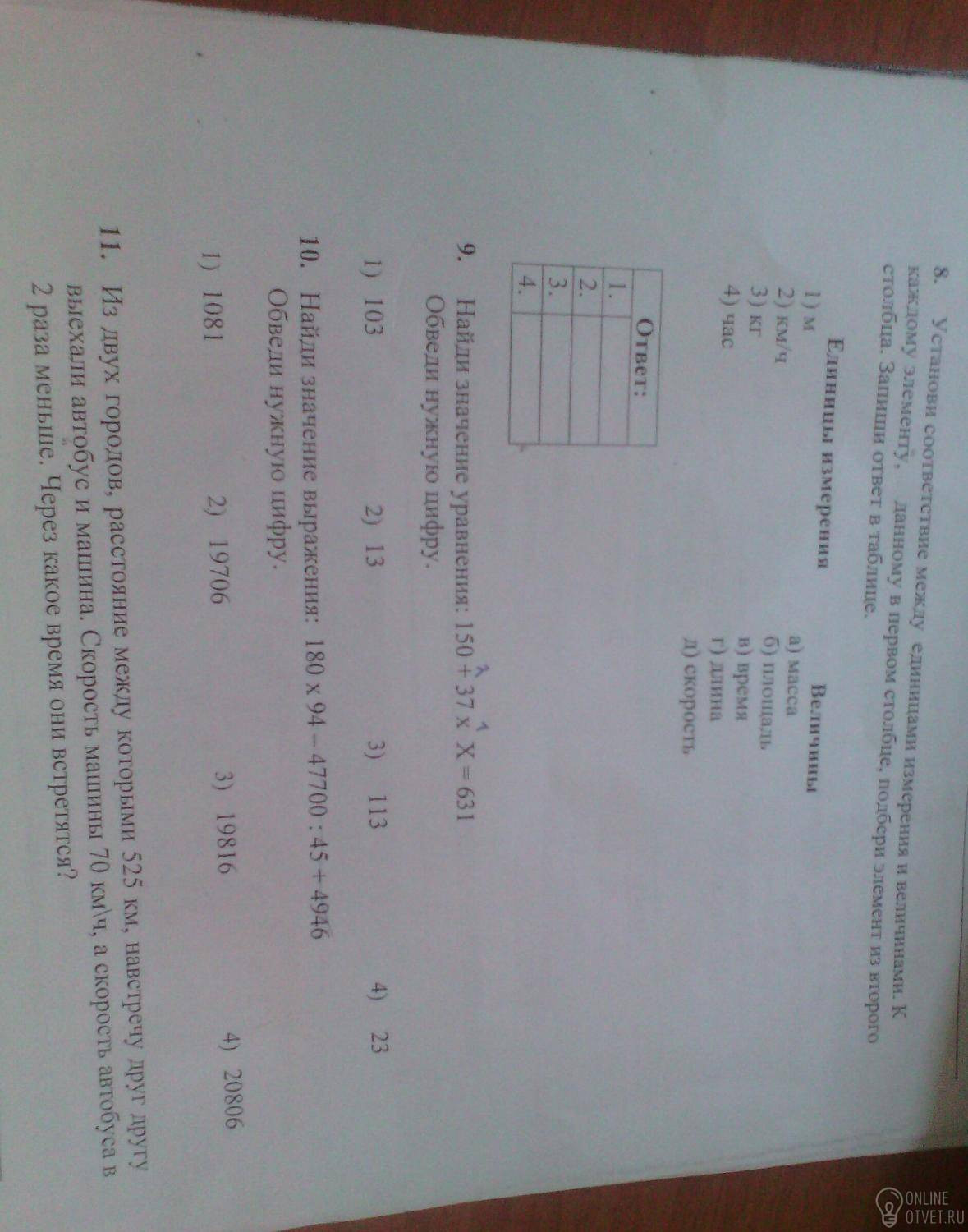 3)525:105=5 ч через столько встретятся автомобиль и автобус