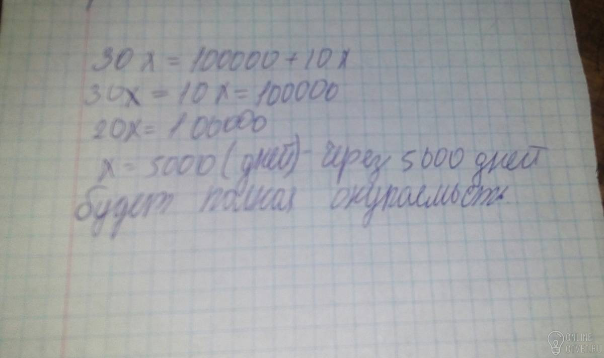 Проезд в метро до работы стоит Людмиле 30 рублей в одну сторону. Если мопед стоит 100 тыс. рублей, а топливо к нему 10 рублей в день, за сколько рабочих дней замена метро на мопед окажется выгодной? (В ответе укажите только числовое значение)