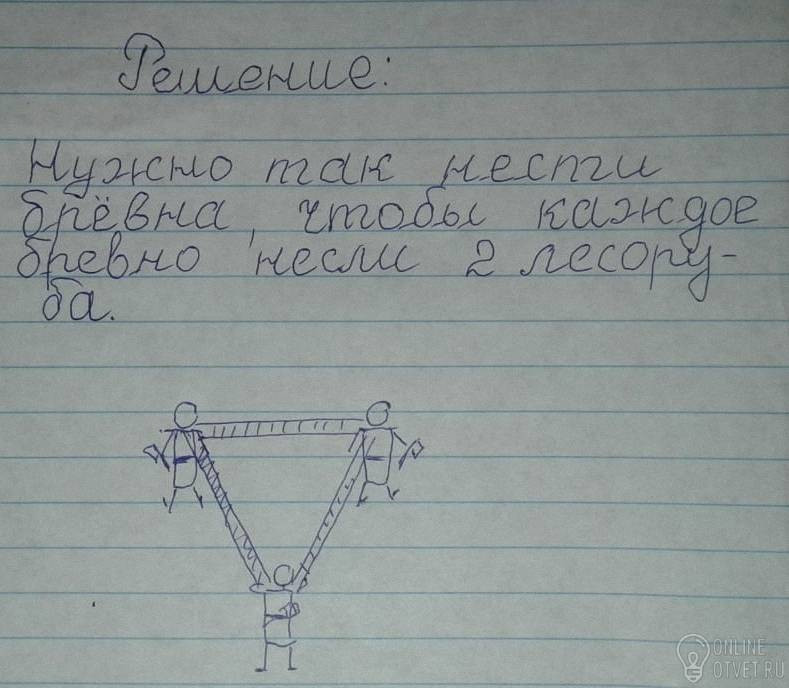И все же лесорубы принесли 3 бревна сразу да так что у каждого была по 2 бревна