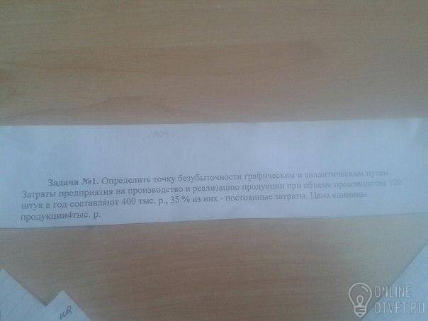 Тб=затраты постоянные/(цена на единицу продукции-затраты переменные на единицу продукции)