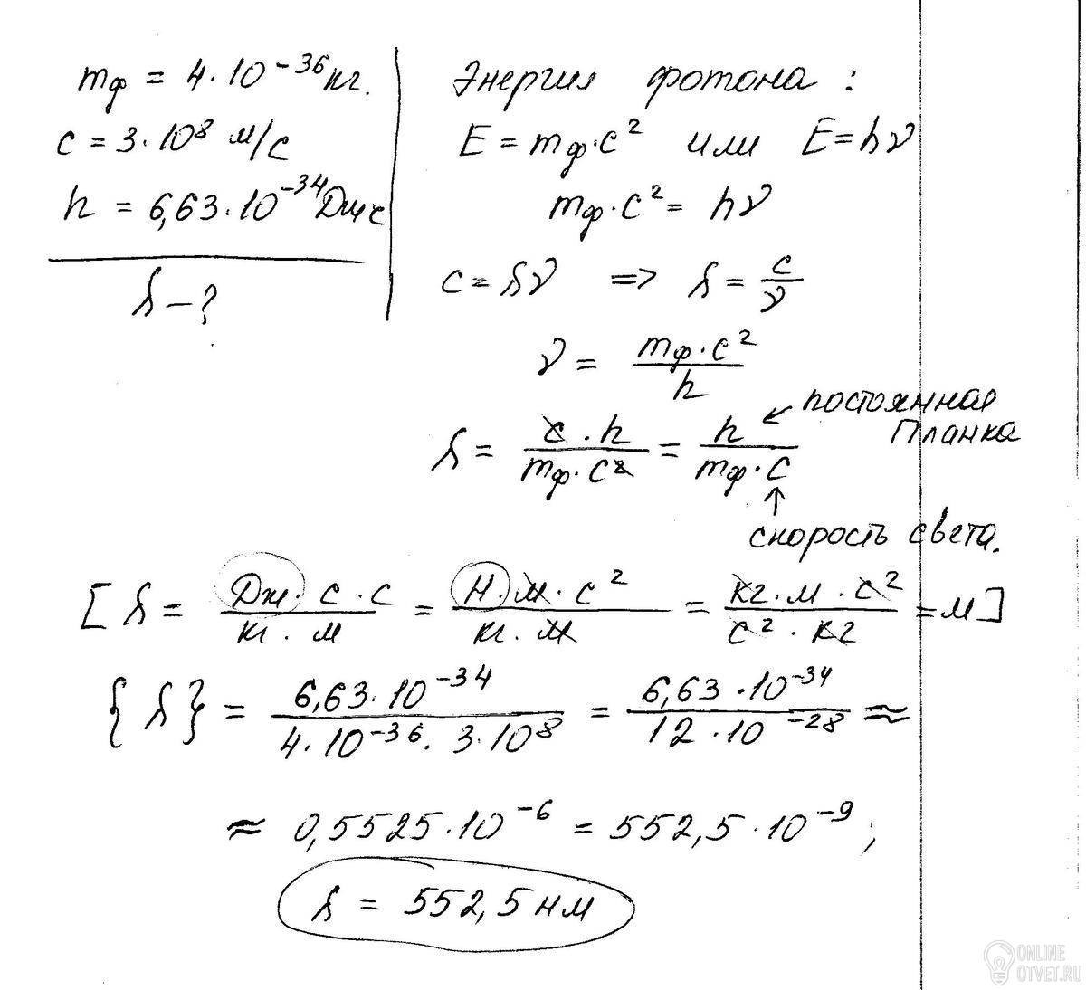 Определить длину волны видимого излучения масса фотона которого равна 4*10в-36кг.