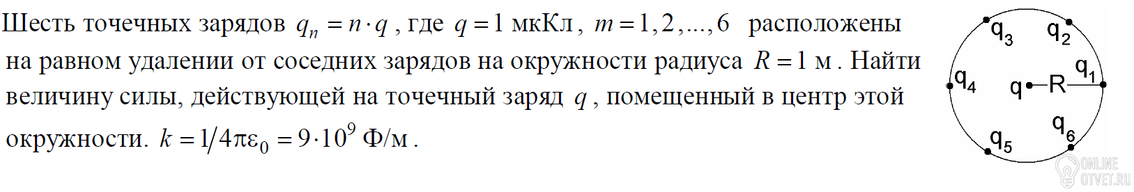 По супер позиции сил получится,что сумма всех сил будет равна нулю,т.к. из диаметрально противоположных точек будут выходит силы одинаковые по модулю но разные по направлению.