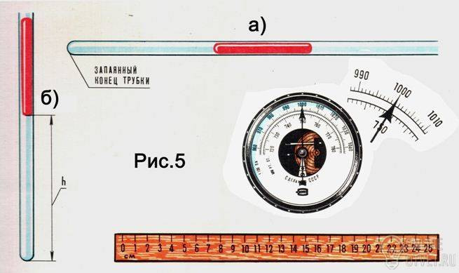 от давления,показанным барометром, будет зависить высота ртути в трубке.Как мы знаем, давление жидкости равно произведению ускорения свободного падения на плотность жидкости на высоту жидкости.Давление у нас показано в гектопаскалях, а приставка гекто=10 в квадрате=100;