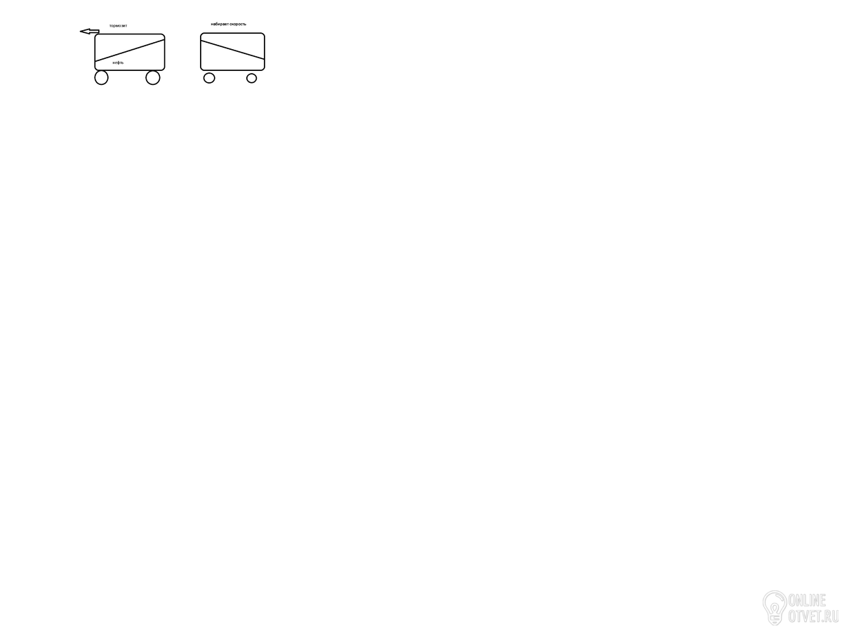 Как располагается свободная поверхность нефти в цистернах, когда электровоз, приводящий их в движение, набирает скорость;замедляет ход?