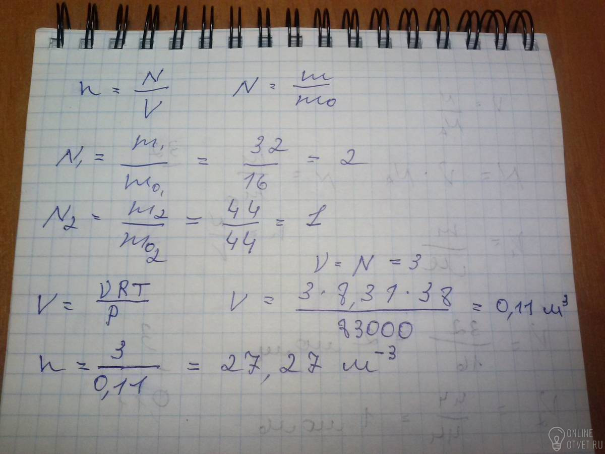 Смесь состоит из кислорода массой 32 г и углекислого газа массов 44 г , какова ее плотность при температуре в 107 градусов и давление 83 кПа