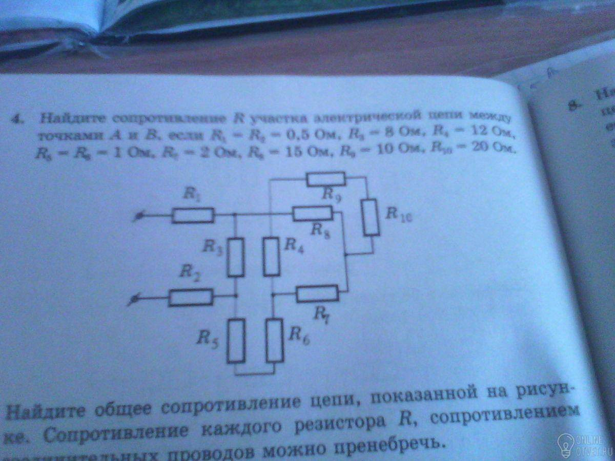 Вся задача на параллельное и последовательное соединение резисторов. Излагаю принцип т.е. алгоритм решения. А Вы подставите свои данные, пошевелив извилиной. Для упрощения я взял, что все сопротивления одинаковы и равны R.