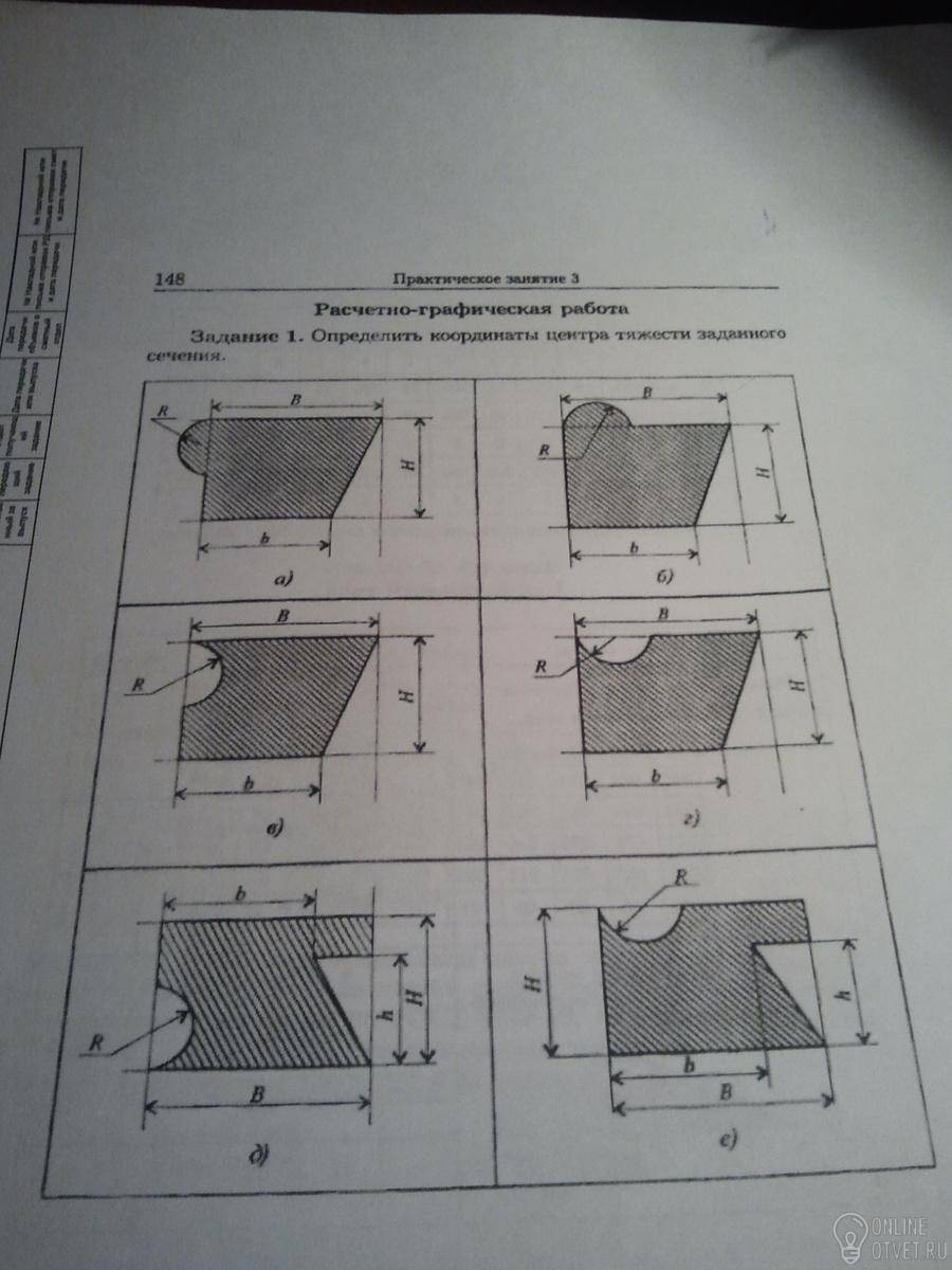 Разделим на несколько частей рисунок №1 (прикрепленный рису.1)красные линии- это разделение фигуры! Желтые точки- это центр тяжести каждой из фигур. и зеленые куда направлено сила тяжести!