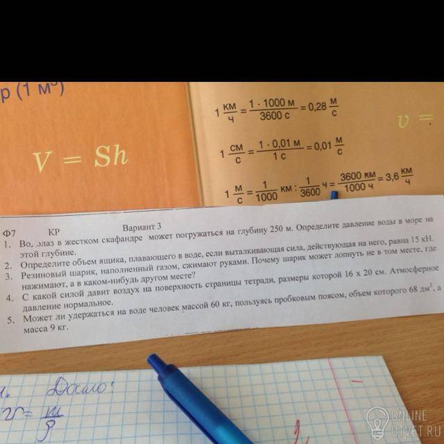 Давление=1000 кг/м3 * 9,8 Н/кг *250м (это нам и так дано, ты же понимаешь)=2450000 Н (если переведешь в кН (килоньютоны), то вообще прекрасно будет). Вот перевод: