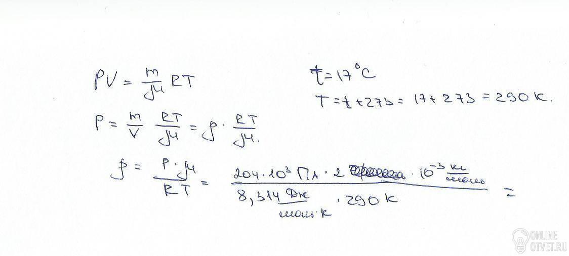 Визначити густину водню при температурі 17С і тиску 204кПа.