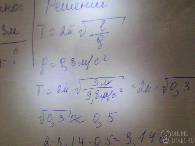 Найти период колебаний математического маятника с длиной подвеса нити равной 3 м