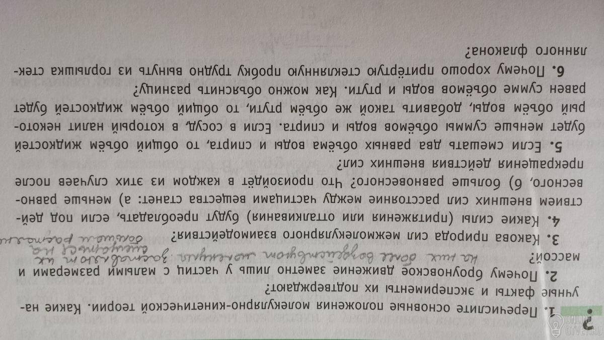 5) между молекулами спирта и воды есть промежутки. При смешивание происходит взаимное проникновение молекул жидкостей в пустве пространства и объем раствора уменьшаетс