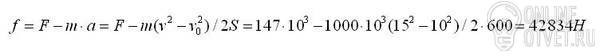 Тепловоз на горизонтальном участке пути длиной 600 м развивает постоянную силу тяги 147 кН. Скорость поезда возрастает при этом от 36 км/ч до 54 км/ч. определите силу сопротивления движению, считая ее постоянной. масса поезда 1000т