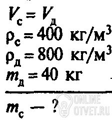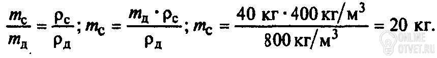 Какова масса соснового бруска,имеющего такие же размеры ,как и дубовый массой40кг?