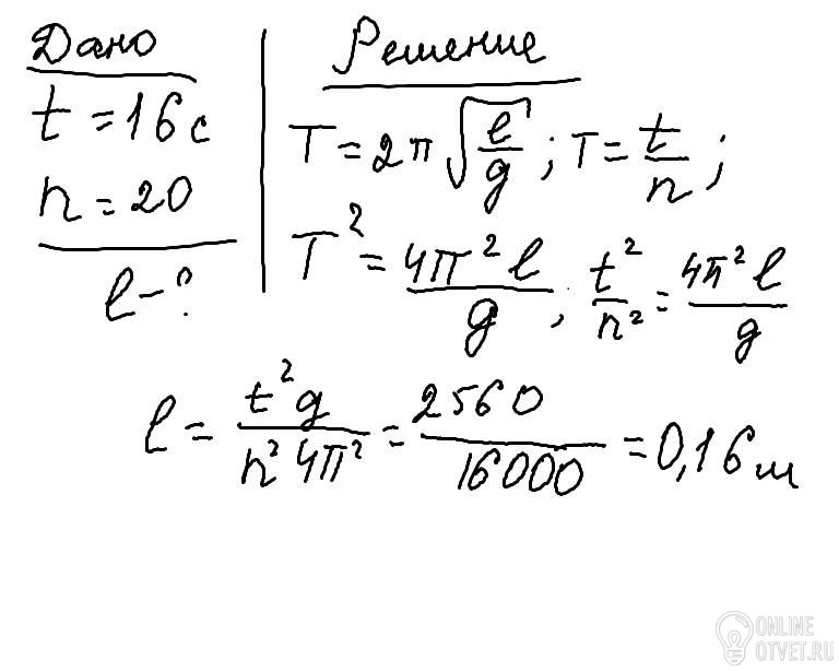 Какую длину имеет математический маятник, если он за 16 с совершает 20 колебаний