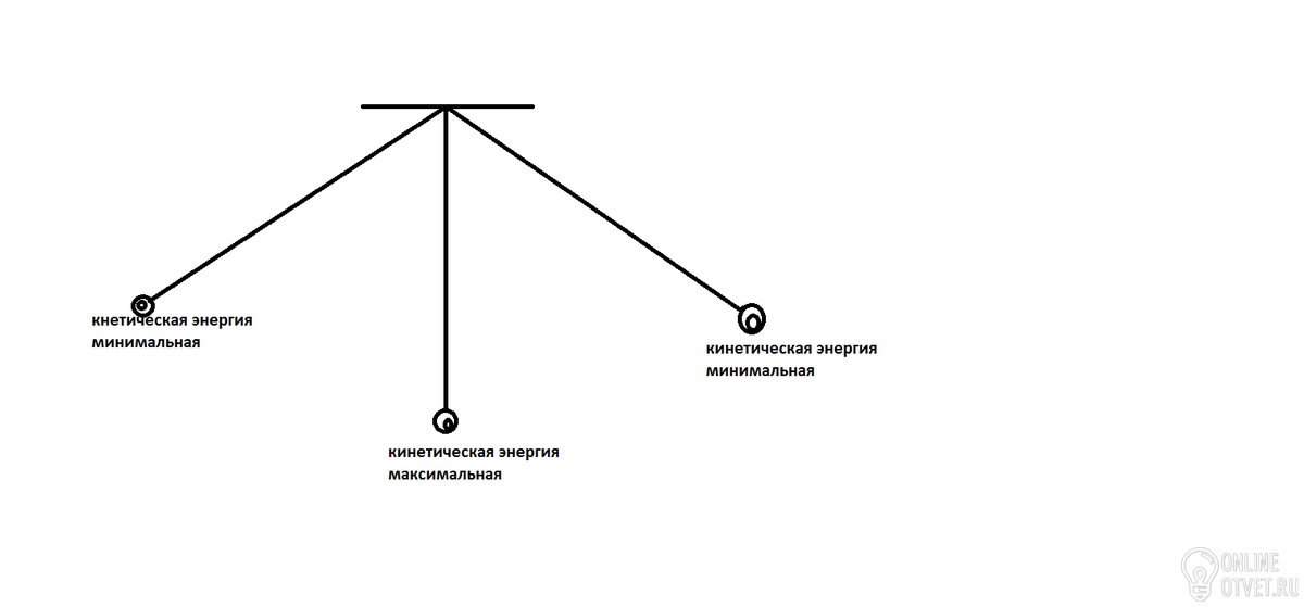 Ну вот смотрите качель это то же маятник в часах к примеру. Кинетическая энергия характеризуется скорость движения, а потенциальная энергия высотой. Теперь смотрим мальчик во время качания поднимается высоко, при этом потенциальная энергия возрастает и тогда когда он поднимается на максимум там потенциальная энергия будет максимум, а кинетическая минимум, когда же мальчик опускается потенциальная энергия убывает тем самым переходит (превращается) в кинетическую энергию, значит кинетическая энергия возрастает, а теперь на представьте себе что в момент когда мальчик на качели проходит положение равновесия и вы моментально сфотографировали его в положении когда качель в равновесии, так вот в этой точке и будет максимальная кинетическая энергия. Вот я вам набросал рисунок схематической качели, правда она брольше на простой маятник похожая):