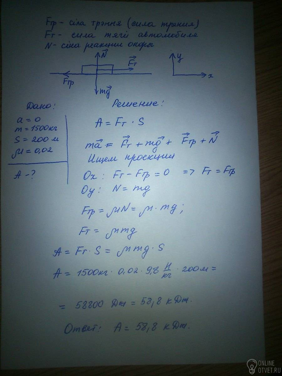 "Допоможіть будь ласка ... Срочно! !! горизонтальній ділянці шляхом довжиною 200 м рівномірно переміщається автомобіль масою 1,5 тонн. Коефіцієнт тертя становить 0,02. Яку роботу виконує двигун? "