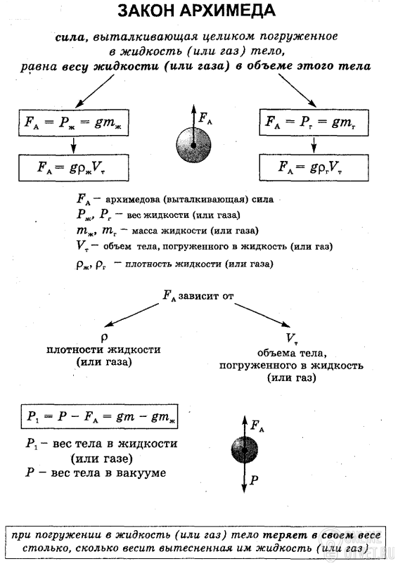 Задание по физике: Опорный конспект по теме "Сила Архимеда".