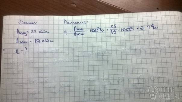 С помощью простого механизма была совершена полезная работа 55 кДж каков его полный кпд, если полная работа составила 89 кДж