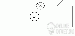 1 в. Из источника тока, ключа, лампы и вольтметра