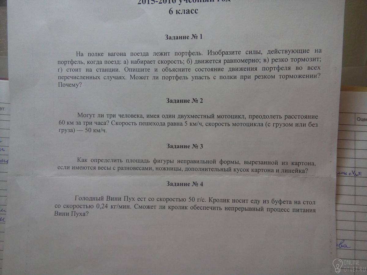 6. Значит, мотоциклист проехал 50 км, затратив на это 1 час. Потом он высадил первого пассажира и развернулся. За это время второй пассажир прошел 5 км и стал ждать мотоциклиста, который его подобрал, и они доехали вместе до конца. На это ушло еще 2 часа. За эти же 2 часа первый пассажир прошел оставшиеся 10 км пешком со скоростью 5 км/ч— 2 балла. В принципе, если бы второй пассажир не ждал мотоциклиста, а двигался, они могли бы преодолеть 60 км за меньшее время, но исходным здесь является то, что мотоциклист двигался 3 часа и дополнительно к 60 км проехал еще 90 км.