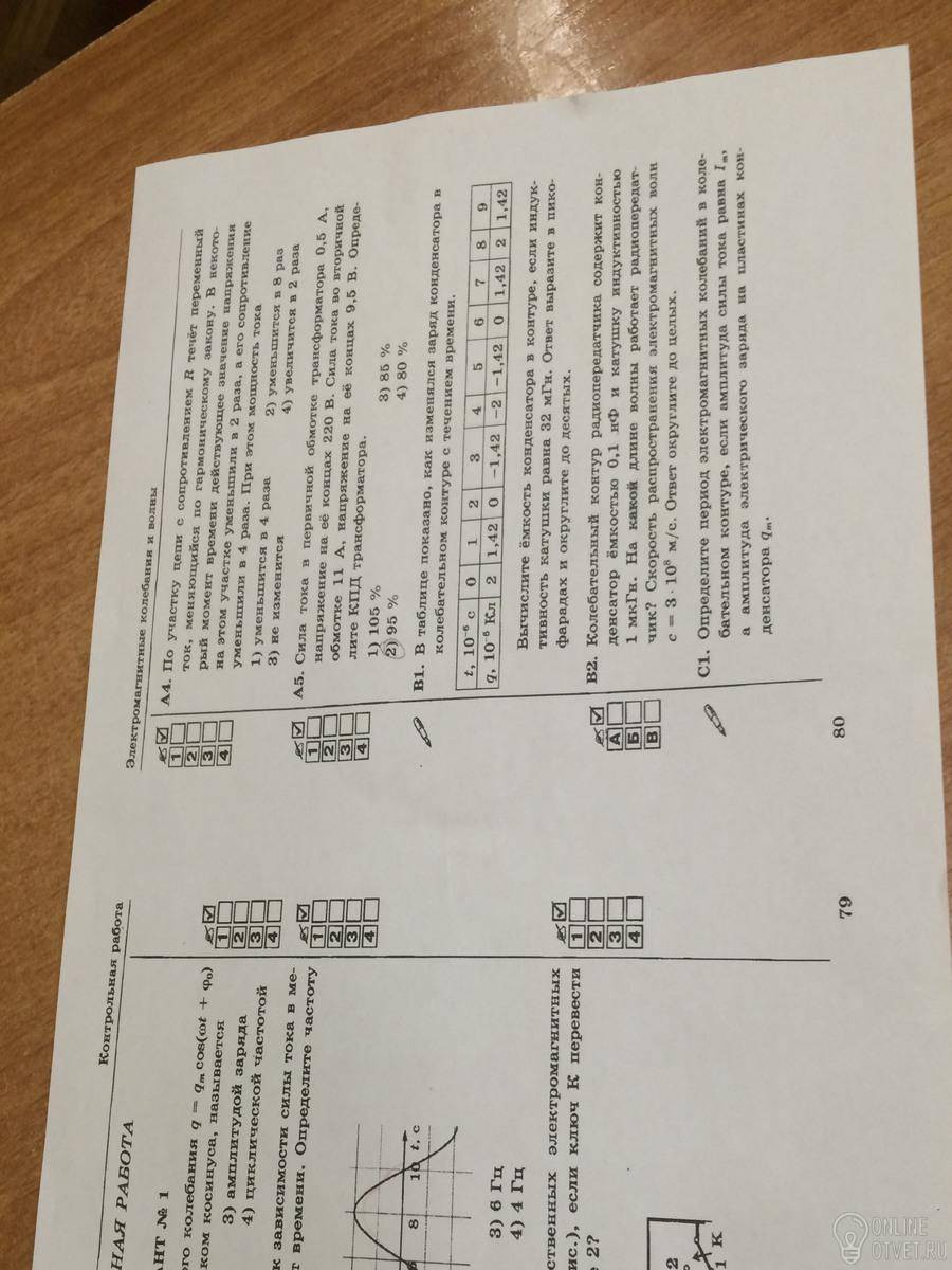 L*I²/2=q²/(2*C) C=q²/(L*I²) I=q/t C=t²/L=4*10^-12/32*10^-3=125.0*10^-12 (125 пФ)B2) C=0.1*10^-9 L=10^-6 c=3*10^8λ=c*T=c*2*π*√(L*C)=3*10^8*2*3.14*√(0.1*10^-9*10^-6)=19 мС1) I'm=qm*ωω=2*π/T T=2*π*qm/I'm