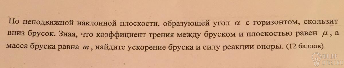 Ускорение бруска a=g(sinα-μcosα)