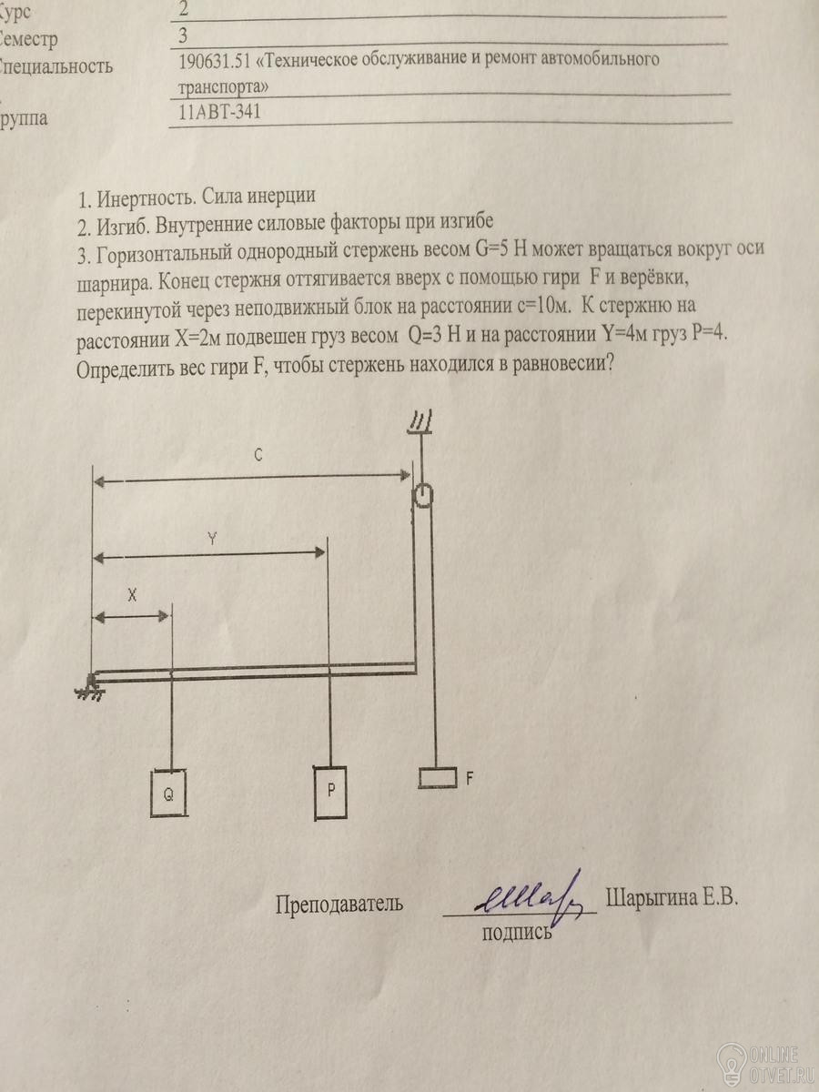 ЗАМЕЧАНИЕ: P и Q направлены ВНИЗ, F направлена ВВЕРХ