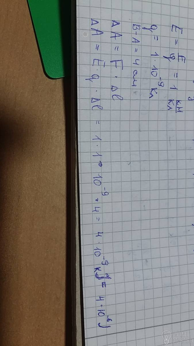 В однородном электрическом поле, модуль напряженности которого равен 1 кН/Кл, переместили заряд, равный по модулю 1*10(-9степени)Кл, в направлении силовой линии на 4 см. Найдите работу силы электростатического поля по перемещению заряда.