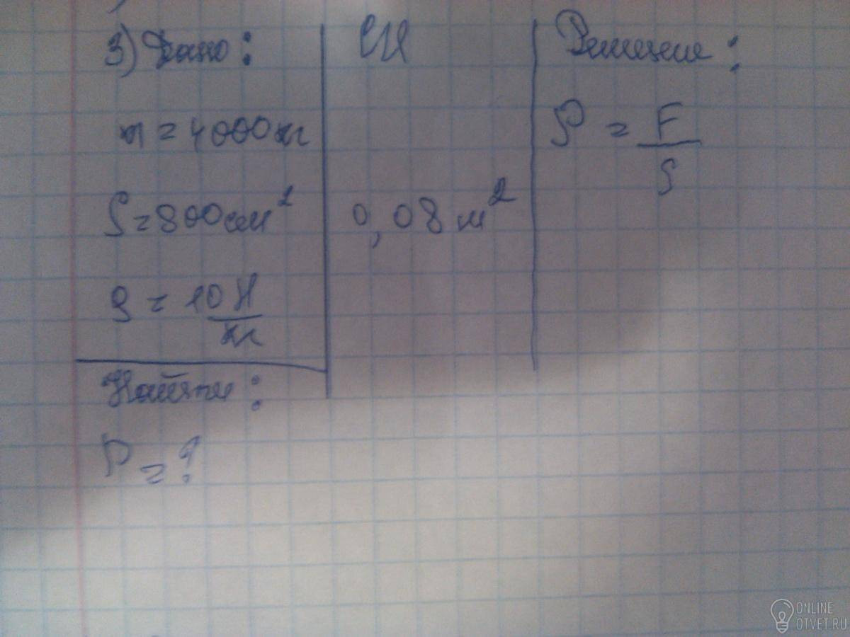 Автомобиль массой 4000 кг имеет площадь опоры 800 см2. Чему равно давление автомобиля на дорогу?