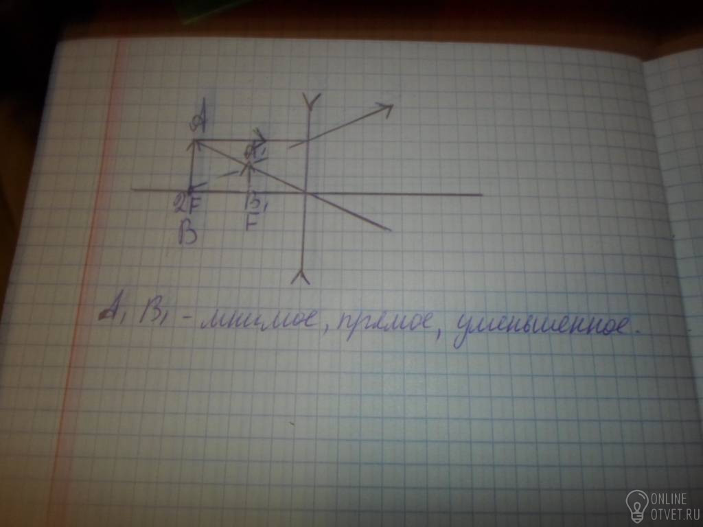 Построить и дать характеристику изображению предмета расположенного на двойном фокусе от рассеивающей