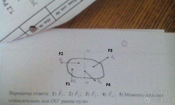 Задание номер два:Тело может вращаться относительно оси ОО под действием сил F1,F2,F3,F4. Момент какой силы относительно ОО отличен от нуля,если ось вращения и вектора сил лежат в плоскости рисунка.