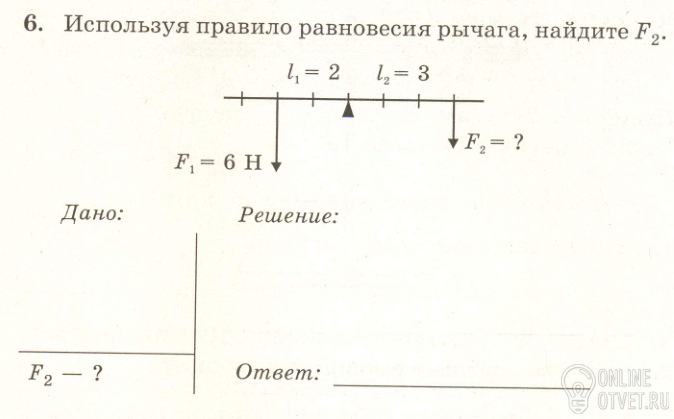 F1*L1=F2*L2 F2=F1*L1/L2=6*2/3=4 H Ответ F2=4 H