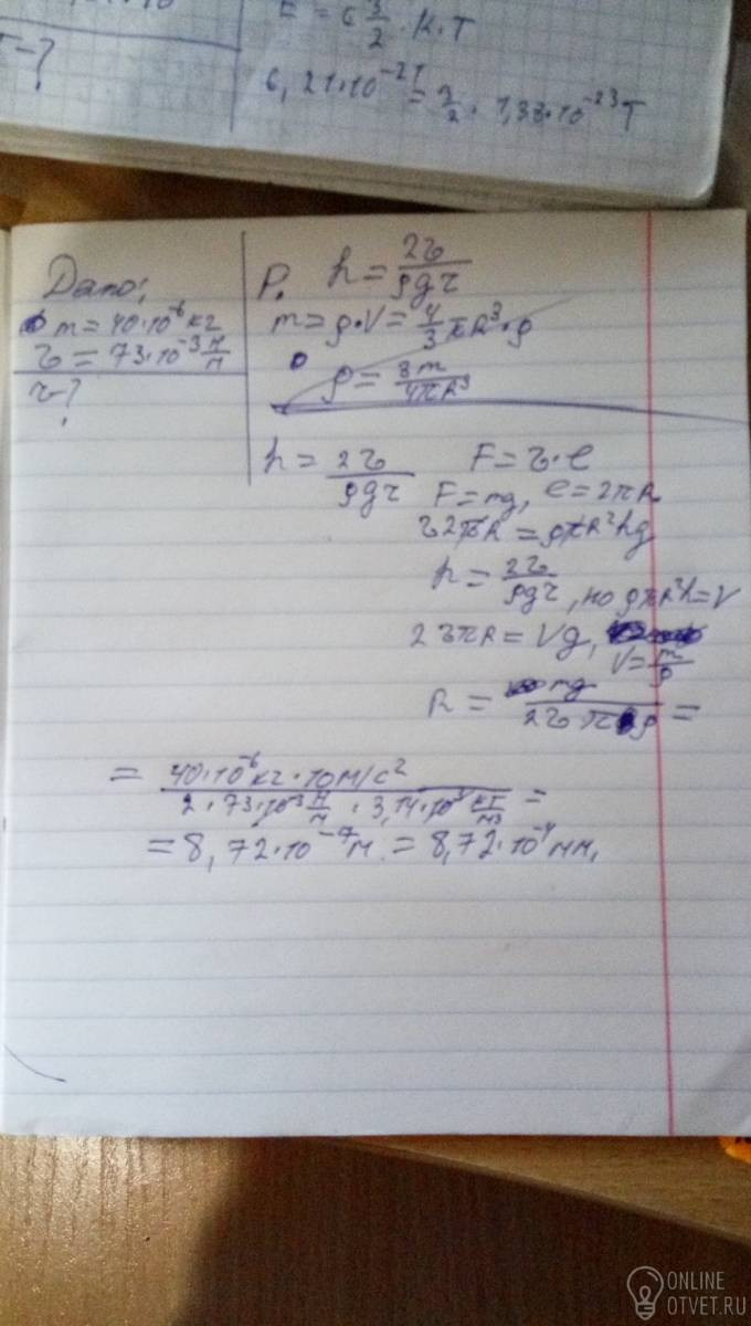 По капилляру поднялась вода массой 40 мг. Найти радиус каппиляра, если смачивание полное, КПН воды 0,073 Н/м.