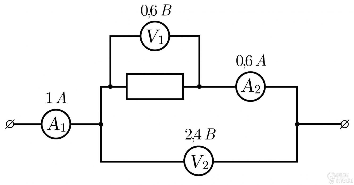 тогда R(V2) = U(V2)/I(V2) = 2.4/0.4 = 6 Ом