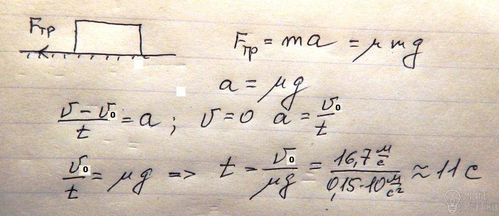 Поезд, подъезжая к станции со скоростью V=60 км/ч, начинает тормозить. За какое минимальное время можно остановить поезд, чтобы лежащие на полках чемоданы не сдвинулись с места? Считать, что при торможении поезд движется с постоянным ускорением, а коэффициент трения р чемодана о полку равен 0,15.