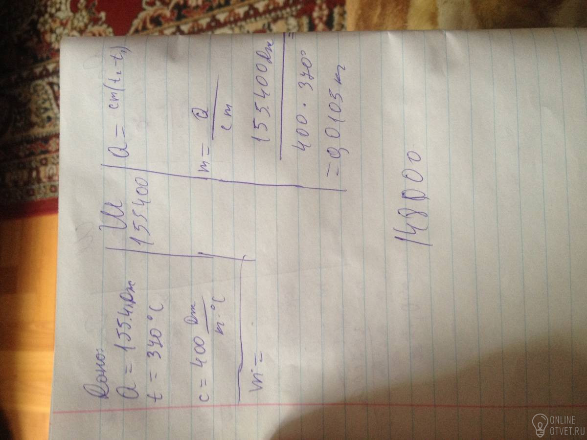 2. Определить массу латунной детали, если для её нагревания на 370 градусов Цельсия потребовалось 155,4 кДж энергии