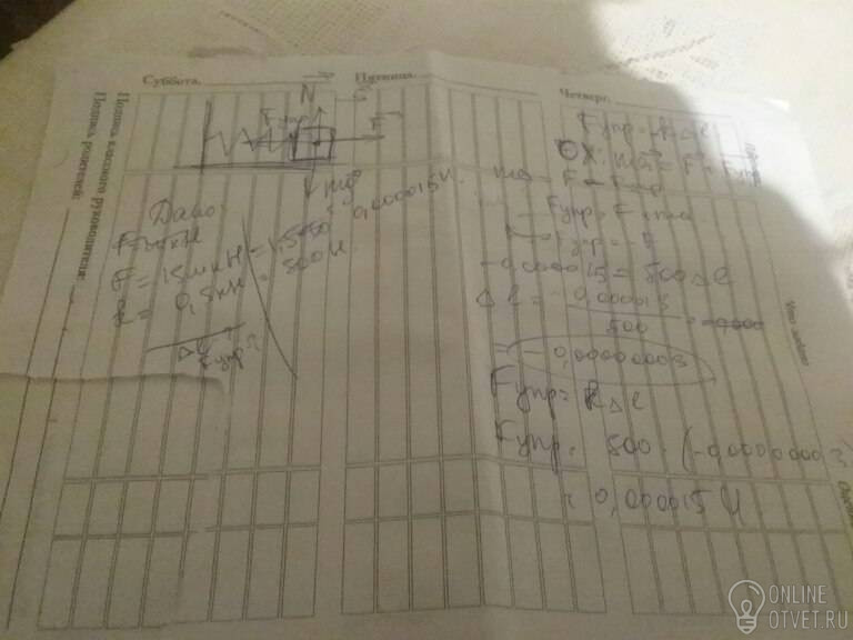 Определить удлинение пружины если на неё действует сила 15мкН , а коэф жест. пруж 0,5 КН найти силу упругости